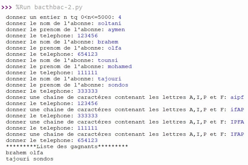 5- affiche le nom et le prénom de chaque abonné gagnant