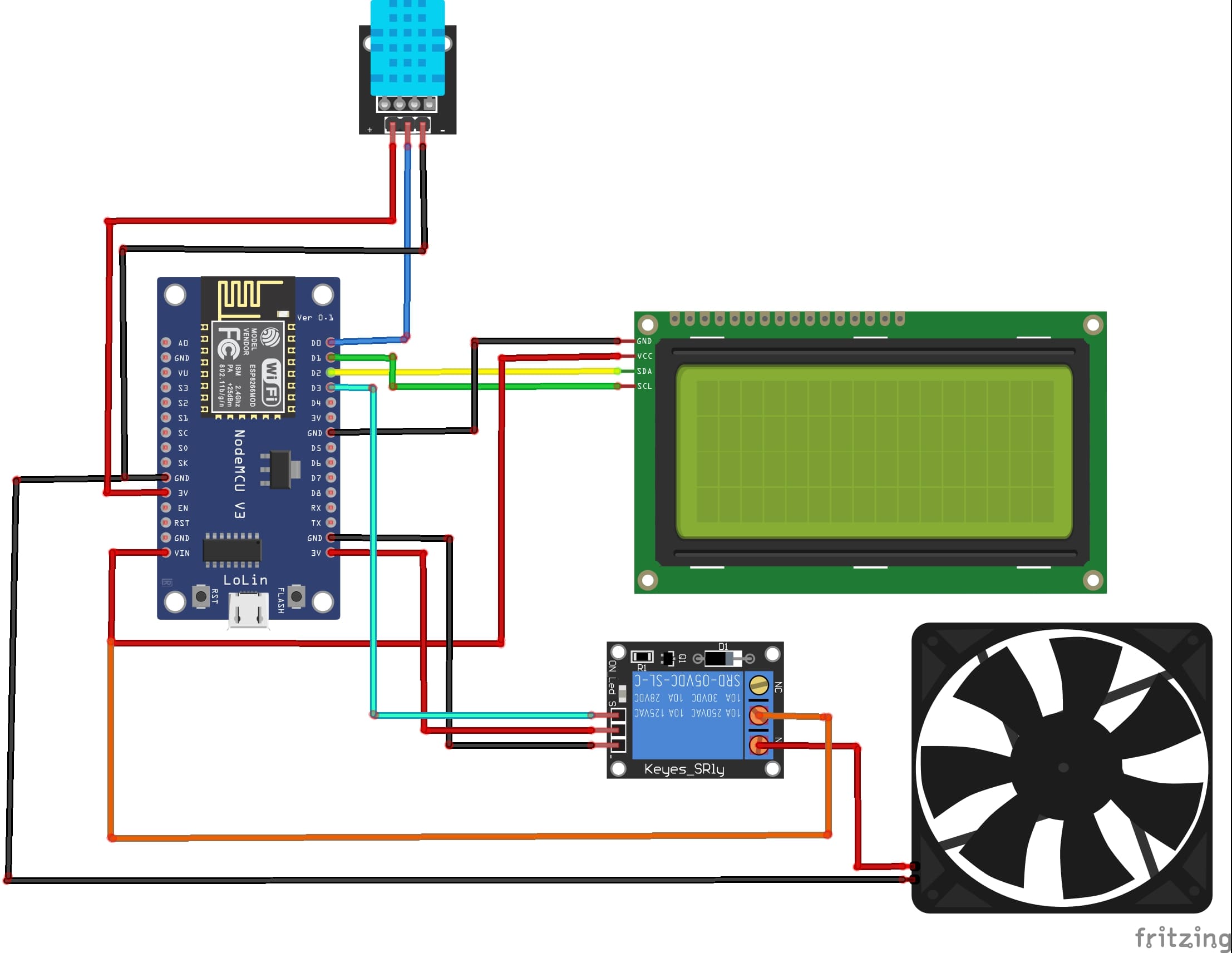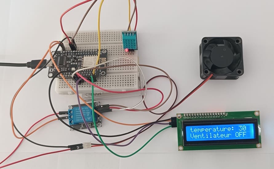 The aim of this tutorial is to develop a smart cooling system using the ESP8266 NodeMCU microcontroller, a DHT11 temperature and humidity sensor, a relay module, a 5V fan, and an LCD I2C display.