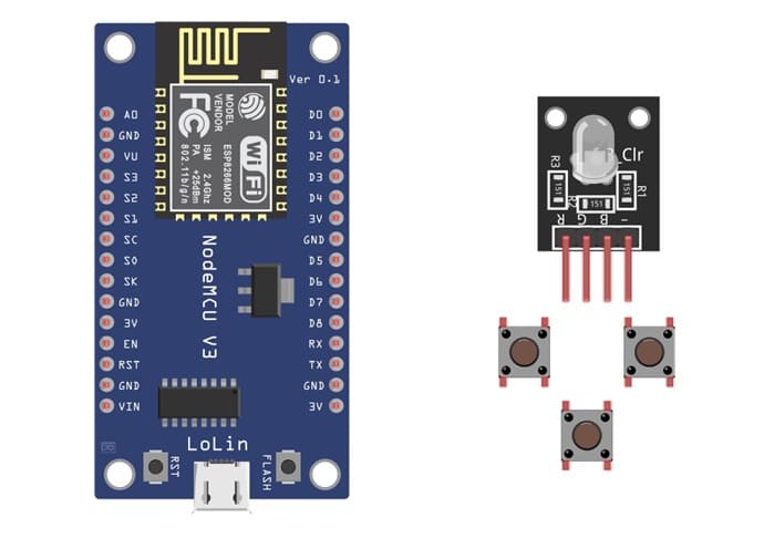 The main objective of this tutorial is to explain step by step how to control an RGB LED using multiple push buttons connected to the ESP8266 NodeMCU board.
