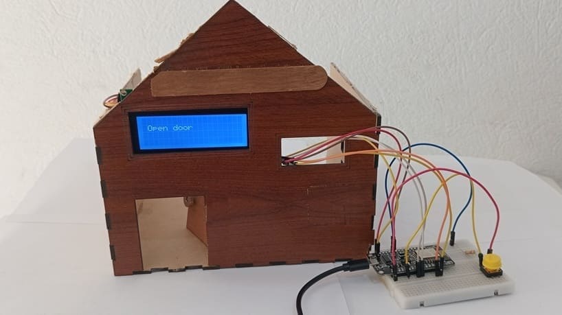 Use a push button to control a servo motor, which acts as a door opener/closer. The ESP8266 NodeMCU controls the logic and updates the I2C LCD display to show the current door status.