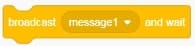 Sends a broadcast message to all sprites. Scripts with when I receive [message1] will start. | |