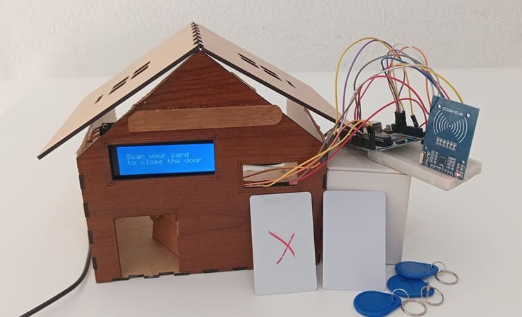 This project demonstrates how to securely control access to a door using an RFID card. The system uses an Arduino to control components, an RFID reader to identify users, an I2C LCD to provide feedback, and a servomotor to open or close a simulated lock.