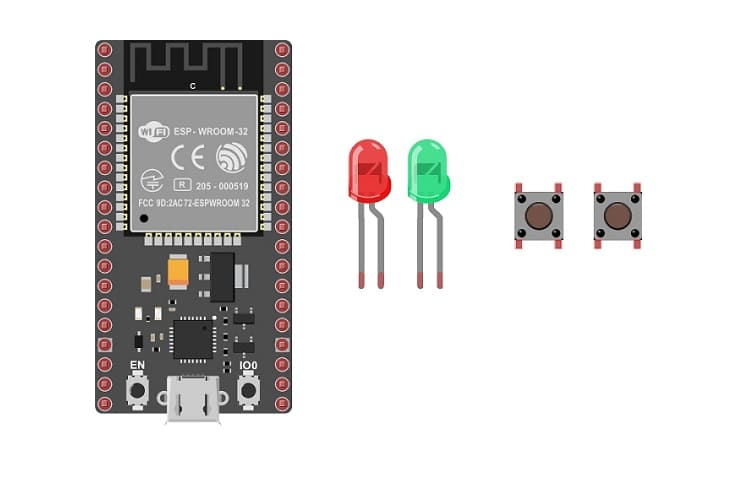 لبرمجة لوحة ESP32 في MicroPython لتشغيل صمامين باستخدام زر ضغط، اتبع الخطوات أدناه. تأكد من أنك قمت بالفعل بتثبيت MicroPython على لوحة الصمامين الباعث للضوء وأن لديك صمامين وزري ضغط متصلة بشكل صحيح باللوحة الخاصة بك.