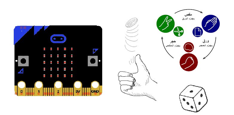 تسمح لك بطاقة الميكروبيت بلعب ألعاب متعددة ، مثل لعبة Rock-scissors-paper الكلاسيكية. عند اهتزاز البطاقة ، يتم اختيار أحد الخيارات الثلاثة (حجر ، مقص ، ورق) عشوائيًا. لذلك من الضروري تحديد متغير يكون رقمًا بين 0 و 2 ، والذي سيعطي ثلاثة خيارات ممكنة. مثلا :