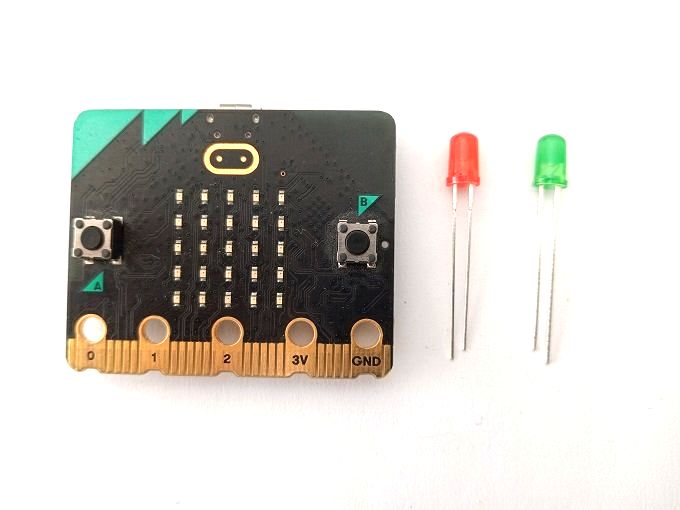 صمامين ثنائيي الباعث للضوء (LEDs): ستحتاج إلى اثنين من LEDs للتحكم بهما. يمكنك اختيار الـ LEDs بأي لون تفضله (مثل أحمر أو أخضر) والتأكد من أنها تتوافق مع الجهد الذي يدعمه بطاقة الميكروبيت.