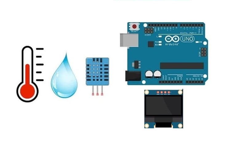 لعرض درجة الحرارة والرطوبة المقاسة بواسطة حساس DHT11 المتصل بالأردوينو على شاشة SSD1306، ستحتاج إلى المكونات التالية: