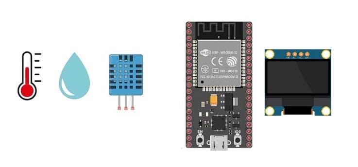 لعرض درجة الحرارة والرطوبة المقاسة بواسطة حساس DHT11 المتصل بلوحة ESP32 على شاشة SSD1306، ستحتاج إلى المكونات التالية: