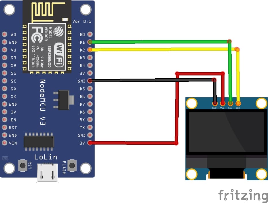 Afficher du texte sur un écran OLED SSD1306 avec ESP8266 NodeMCU