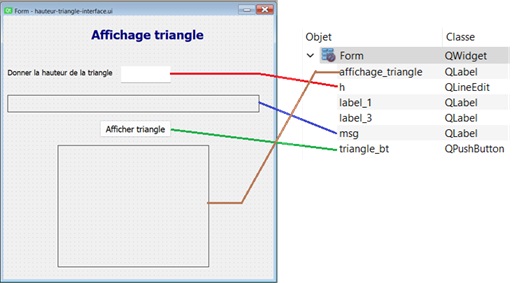 QLineEdit nommé 'h' pour entrer la hauteur du triangle.