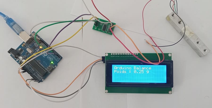 L’objectif de ce projet est de réaliser une balance électronique numérique capable de mesurer le poids d’un objet et d’afficher la valeur mesurée sur un écran. Le système est basé sur la carte Arduino Uno, qui assure le traitement des données, le module HX711 utilisé pour amplifier et convertir le signal provenant de la cellule de charge, et un afficheur LCD 16x2 qui permet de visualiser le poids mesuré. Ce projet constitue une bonne introduction aux systèmes de mesure électroniques et à l’utilisation des capteurs avec Arduino.