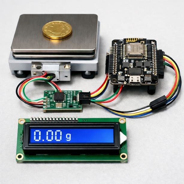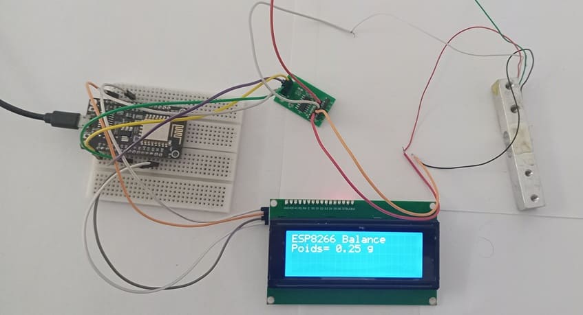 L’objectif de ce projet est de réaliser une balance numérique électronique en utilisant la carte ESP8266 NodeMCU, le module amplificateur HX711, un capteur de force (load cell) et un LCD 16x2 I2C. Cette balance permet de mesurer avec précision le poids d’un objet et d’afficher la valeur directement sur l’écran LCD. Le projet a aussi pour but de montrer comment interfacer un capteur analogique très sensible avec un microcontrôleur et comment afficher les données mesurées sur un afficheur I2C en temps réel.