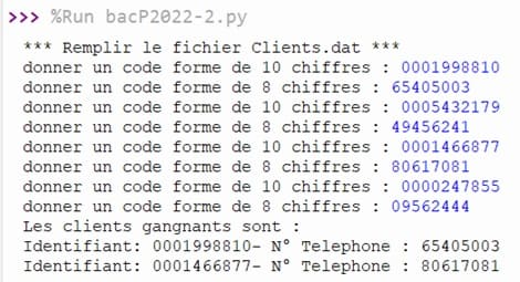 2- Ecrire un programme en Python intitulé Jeu qui permet de remplir un fichier "Clients.dat" par l'identifiant et le numéro de téléphone de p
