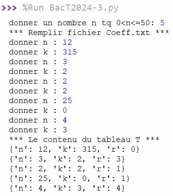 Le candidat n'est pas appelé à remplir le fichier "Coeff.txt". On rappelle que chaque ligne du fichier contient un couple d'entiers ayant le format (n,k).