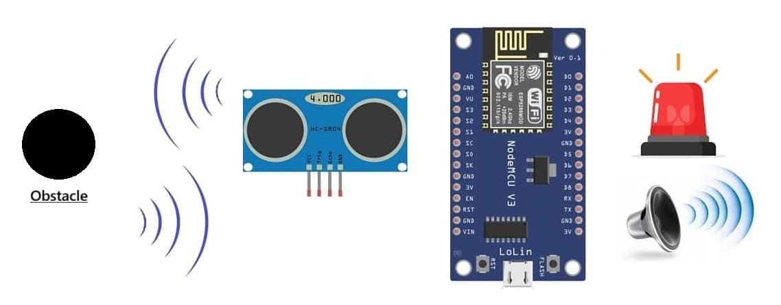 Ce système de détection d’obstacles utilise la carte ESP8266 NodeMCU comme unité de commande principale.