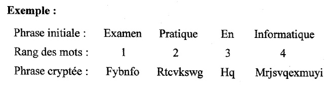 Cryptage des phrases – Bac pratique – Section informatique – 2013
