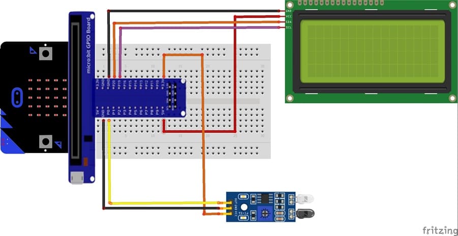 La carte Micro:bit représente l’unité de traitement du système. Elle est responsable de la lecture des données provenant du capteur FC-51, du traitement logique de ces données et de la communication avec l’afficheur LCD. Grâce à la carte d’extension GPIO, ses broches (P0, P1, P2, 3V, GND, etc.) sont facilement exploitables pour alimenter et interfacer les différents composants.