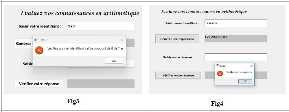 ~ d’afficher un message d’erreur, conformément à la figure Fig4 de l’annexe, dans le cas où l’élève n’a pas fournie de réponse ;