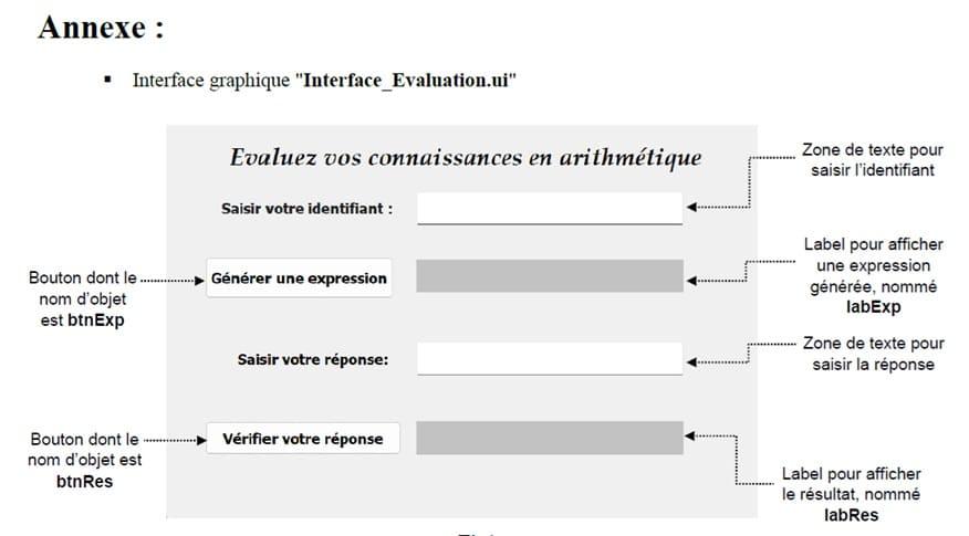 1- En se basant sur la figure Fig1 de l’annexe, compléter l'interface graphique "ui" par les éléments manquants.