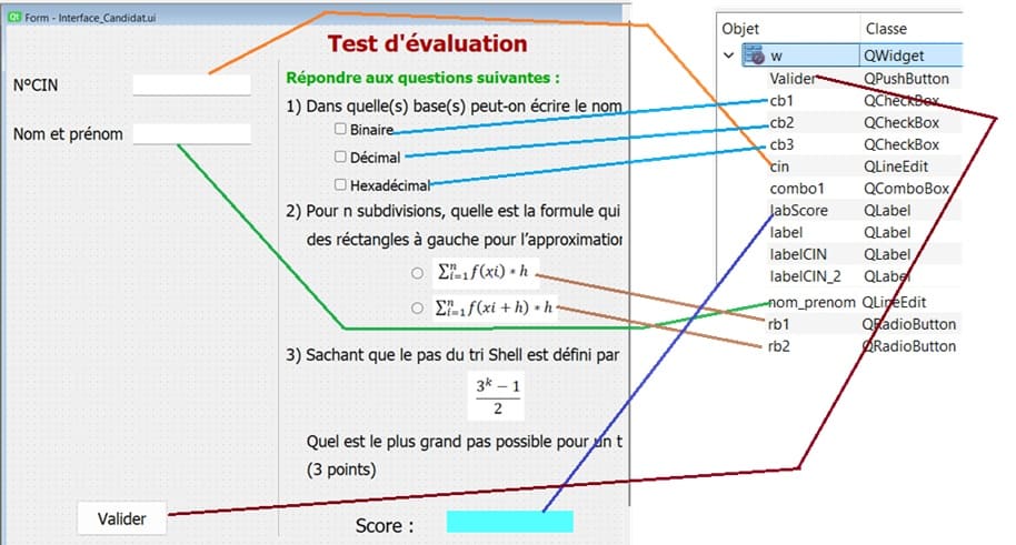 1- En se basant sur la figure 1 de l’annexe, compléter l’interface graphique "Interface_Candidat.ui" par les éléments "Line Edit" et "Label" manquants.