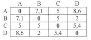 On se propose par la suite d'utiliser ce tableau pour calculer les distances entre Le différents points et les ranger dans une matrice carrée M d'ordre n où les indices des lignes et des colonnes sont les noms des n points.