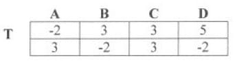 Pour n = 4, si on donne aux quatre points A B, C, D les coordonnées. suivantes. : A(-2, 3) ; 8(3, -2) ; C(3,3)} e D(5, -2). alors le tableau T sera rempli comme suit :