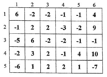 On se propose de chercher dans une matrice M, les plus longues séquences d'éléments juxtaposés dont la somme est égale à zéro, en procédant comme suit :