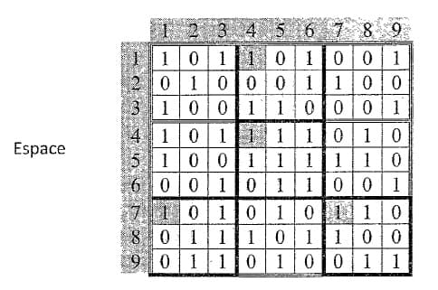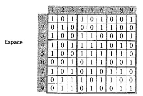 et la subdivision de la matrice Espace en 9 carrés se fera de la manière suivante :