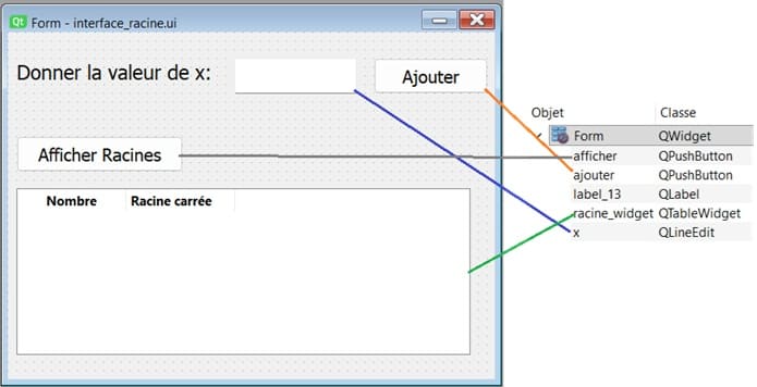 1- Ouvrir le fichier "Interface_Racine.uï" situé dans le dossier de travail et compléter l'interface graphique par les éléments manquants.