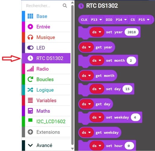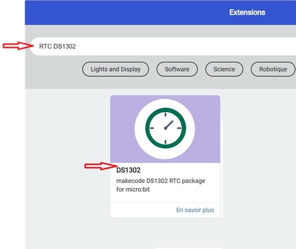 4- De la même manière ajoutez l'extension nécessaire pour utiliser le module RTC DS1302.