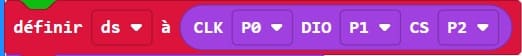 Cette instruction connecte le module DS1302 à la Micro:bit :