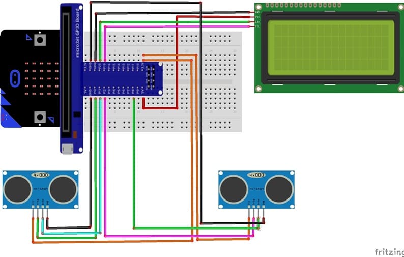 Ce programme en MicroPython implémente un radar de vitesse embarqué basé sur la carte Micro:bit. Il mesure la vitesse d’un objet en mouvement en utilisant deux capteurs ultrasoniques HC-SR04 et affiche le résultat sur un écran LCD I2C. Le système repose sur la mesure du temps de passage entre deux points fixes.