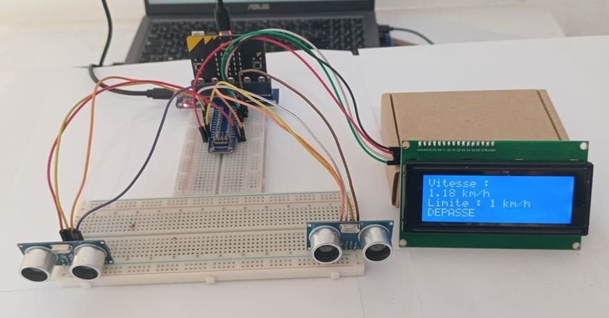 Le résultat est ensuite converti en km/h si nécessaire et affiché sur l’écran LCD I2C. Le système peut également intégrer des seuils de détection pour améliorer la précision et éviter les faux déclenchements.