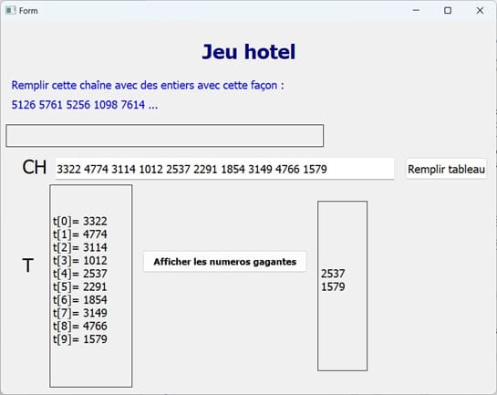 Pour résoudre ce problème, voici le principe de l'algorithme qui permet de remplir un tableau T par n numéros de réservation, puis d'afficher la liste des résidents gagnants :