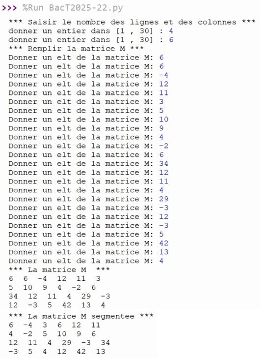 Segmenter Matrice – Bac théorique – Section informatique – 2025