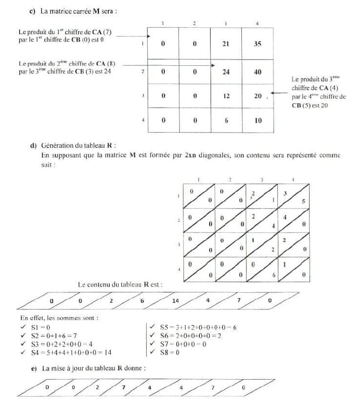 M[i][j] = te produit du ième chiffre de la chaîne CA par le jème chiffre de la chaîne CH