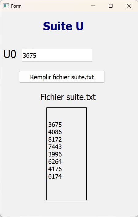 La procédure remplir_fichier_suite(u0) sert à générer la suite définie par :𝑈𝑛+1=max_entier(𝑈𝑛) − min_entier(𝑈𝑛) et à enregistrer tous les termes de cette suite dans un fichier texte.