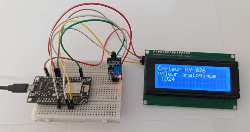 Ce tutoriel a pour objectif de montrer comment utiliser le capteur de flamme KY-026 avec la carte ESP8266 NodeMCU afin de détecter la présence d’une flamme et d’en afficher les valeurs sur un écran LCD I2C.